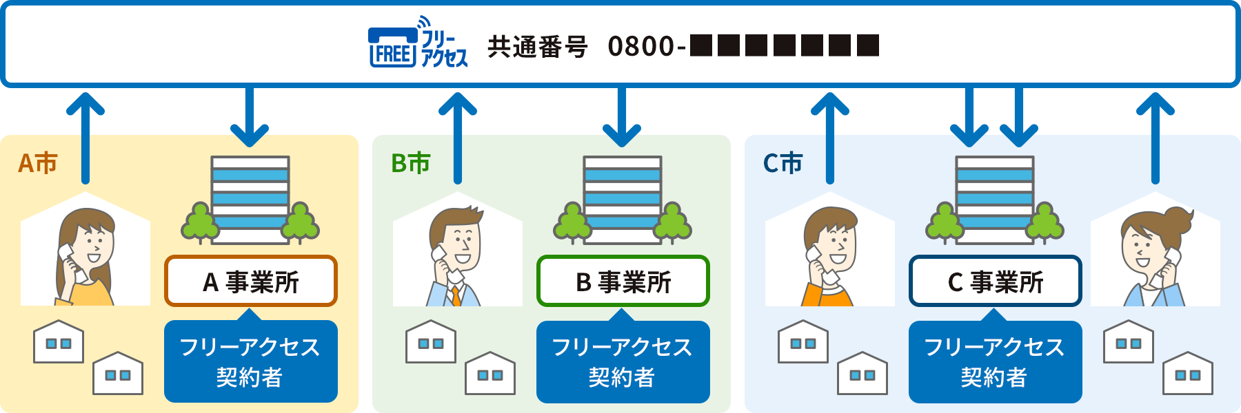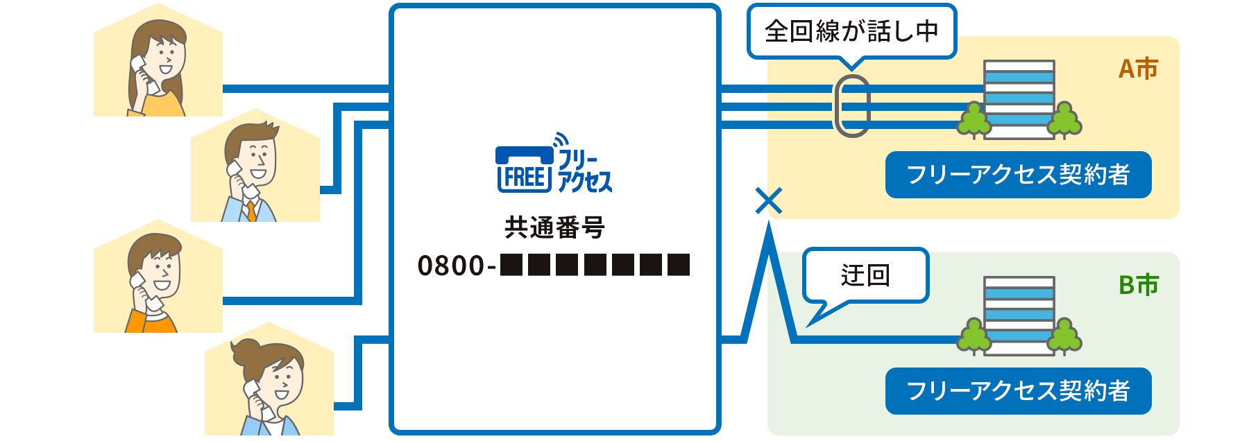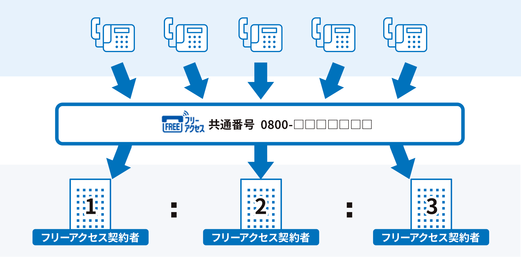 あらかじめ登録した複数の着信箇所で、同一のフリーアクセス番号をご利用できるサービスです。