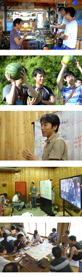 今回の研修では、ICTを使った集落への取材、収穫体験、アイデア討論、映像製作と発表会を行っています。