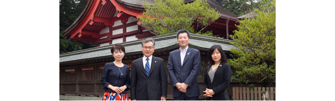 本日は、それぞれのお立場から環境保護活動や「持続可能な社会の実現と社会課題の解決」について、宗像市で環境問題にも取り組まれている、宗像大社 葦津 敬之宮司、NTT西日本 九州事業本部 小澤 正憲本部長、NTT西日本 環境経営推進室 原 美永子部長にお話を伺います。