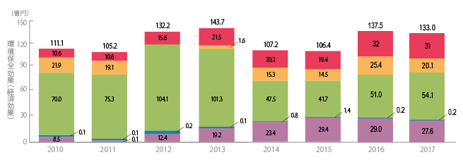- 2017年度の環境保全効果(経済効果)は、133.0億円となり、昨年度実績を下回りました。