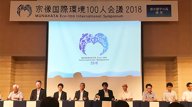 NTT西日本グループは、環境保護を推進し、地域社会の発展に貢献する取り組みの一環として、福岡県宗像市で開催される「宗像国際環境100人会議」の実行委員会に2017年12月から参画しています。同会議は、玄界灘の海水温度の上昇により、沿岸部に広がる磯焼け、マイクロプラスティック製の漂着ゴミをはじめとした問題を中心に、海をメインテーマに各分野で活躍するリーダーや国内外の学識経験者、自治体、企業、NPO、メディアなどが集結し、解決策を協議するシンポジウムです。