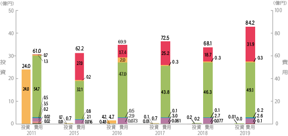 2019年度の費用は、事業エリア内公害防止コストのうちPCB処分費用が増加し、84.2億円となりました。