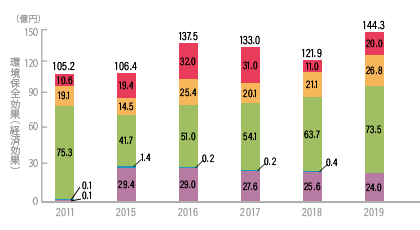 - 2019年度の環境保全効果(経済効果)は144.3億円となり、昨年度実績を上回りました。