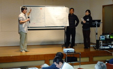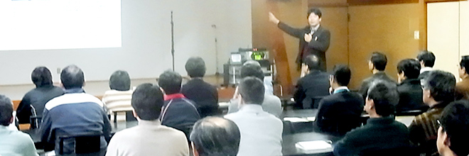 企業の活動について、滋賀県の琵琶湖を中心とした環境運動を実施されたり、各地のNPOと企業、市民を結ぶ活動をされている275研究所(TSU.NA.GO Research Institute)の丸尾哲也 先生 菱川 貞義先生に、“NTT西日本における「生物多様性」”と題して、葦からはじまった滋賀県でのNTTグループの活動の紹介や、環境保全活動や社会貢献活動では、それぞれ参加する人が得意なことを行うことが重要であることや、最近のソーシャルの動きや、共感型価値創造の社会貢献を通したビジネスについての講演をしていただきました。
