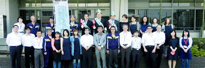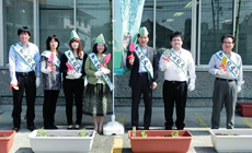 社屋の室温、電力使用量の低減を図るため、つる性植物の「みどりのカーテン」を設置し、環境意識の向上を目的として、5月9日 岐阜県内NTTビル(梅ヶ枝・加納ビル)において、植苗式を実施しました。