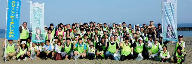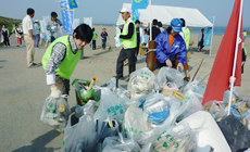 平成25年5月26日(日)、石川の海岸線583?をきれいにする海岸愛護運動「クリーン・ビーチいしかわinかなざわ2013」が金沢市の海岸5会場で開催され、市民6千人が参加。