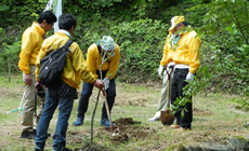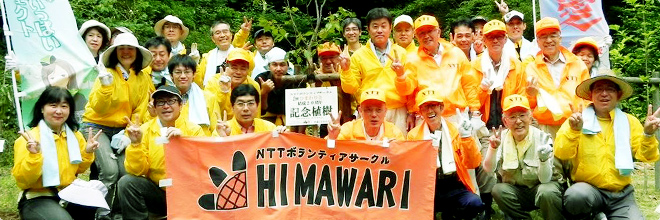 「ながら川ふれあいの森」において、NTTボランティアサークルひまわり会20周年記念としての植樹と、植樹場所周辺の下草刈りを行いました。慣れない鎌での作業や、スコップでの土掘りでしたが、植樹を終えての達成感はひとしおでした。