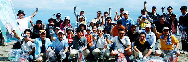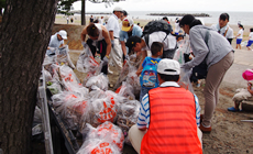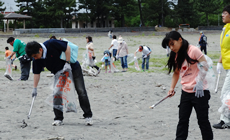 平成25年6月16日(日)NTTグループの社員68名により富山市岩瀬浜海水用浴場の清掃活動に参加しました。