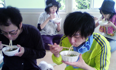 スッキリした作業区域を振り返り、里山づくり活動の重要性を実感することができました。作業の後には、冷たいそうめんやよもぎ餅などが配られ、みんなで活動の話をしながら、笑顔で頂きました。