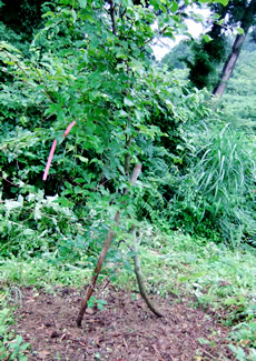 作業は、植栽されたコナラ・ブナなど幼木の“下草刈り・つる切り”で、猛暑の中、1時間半にわたり作業を行いました。