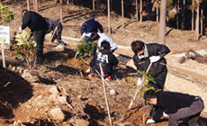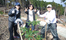 活動終了後は、地元のお母様方による手作りの八女市黒木名物「だご汁」をご馳走していただき、植樹作業の疲れを癒しつつ、地元の方々の心温まるご厚意に感謝しながら、初めての「みどりいっぱいプロジェクト」が終了しました。植樹した西洋しゃくなげは、5月の連休には見頃を迎えるそうです。
