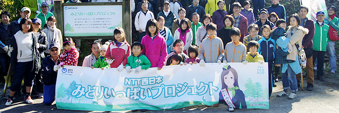 福岡グループで初めての取り組みとなる「みどりいっぱいプロジェクト」を、八女市黒木町にある「くつろぎの森 グリーンピア八女」で、社員・家族80名が参加し実施しました。