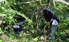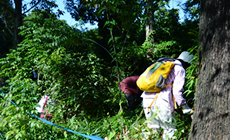 森林浴を感じ2時間程、額に汗をかきながら、樹木に絡んだ蔦を取り除いたり、繁った草を刈り取りました。