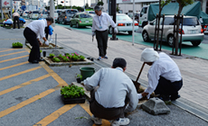 今回は、平成26年3月19日(水)春の風が心地よく吹く中、清掃活動と並行して「みどりいっぱいプロジェクト」の一環で城間ビルと楚辺ビル玄関前の花壇に春の花を併せて280株植えました。