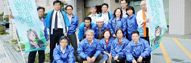 BA西日本沖縄事業所及び沖縄支店総務担当では、毎月1回、合同でNTT城間ビル周辺の清掃活動に取り組んでいます。