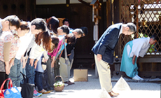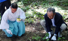 続いて参加者は、御祓い・本殿参拝を行った後に、各地の里親の皆様の「里帰りして元気に育って欲しい」という思いとともに、葵の苗を大事に植栽しました。参加者の中には自ら里親をしている人も増えてきており、今回は北陸や九州から足を運ぶ里親の方もいらっしゃいました。