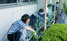 平成26年5月9日、21日両日において、昨年に引き続き「緑のカーテン」作成のため、岐阜BU内3ビル(加納・梅ケ枝・北町)で、“つる性植物”の植栽を実施しました。