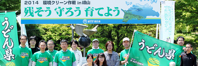 NTTグループでは、「美しい自然を子供たちに引き継ぐ一役になれば」と、5月10日(土) 午前9時30分から、高松市の峰山公園において、「2014NTT環境クリーン作戦in峰山」を実施しました。