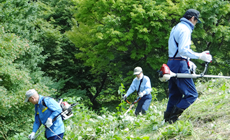 NTT西日本大分グループでは、「荒城の月」で有名な竹田市岡城跡の景観保全等のため、地元商工会議所を中心とした「岡城址南面の里山林健全化推進事業協議会」と連携し、草刈りや竹の伐採などの整備作業に取り組んでいます。長年放置された荒廃地を整備し、本来の景観を取り戻そうという取り組みで、防災対策や観光資源としての景観も飛躍的に向上することが期待されています。