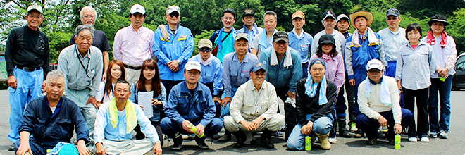 今年で7回目となる当日は、梅雨晴れの晴天の中、大分グループの社員や家族ら27名が参加。竹田市の野田副市長や竹田市の町興しメンバー、災害復興支援推進プロジェクト「竹田・竹ほたる」の縁で大分県立芸術文化短期大学の学生も参加し、心地良い汗を流しました。