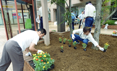 小雨が降る中、午前10:00より主催者の挨拶、注意事項等を説明後、約280株の色とりどりの花の苗を参加した社員により見栄えのする配置を考えながら約1時間の作業を行いました。