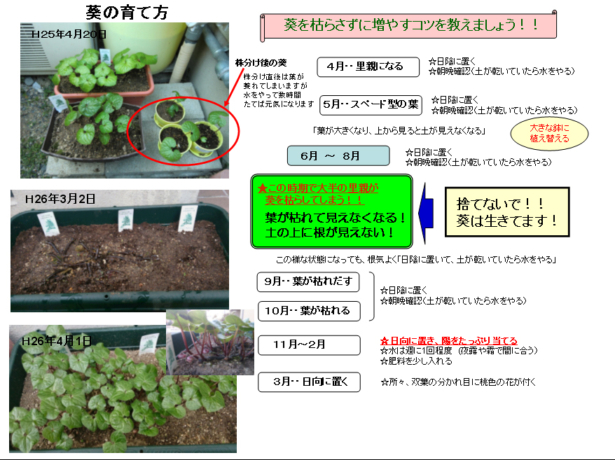 より多くの里親が葵の苗の生育に成功して、来春、上賀茂神社にたくさんの株分け苗が届くのを楽しみにしています。