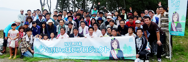 7月12日(土)、福岡県糸島市福井海岸にて、社員・家族100名が参加し松林保全活動を実施しました。