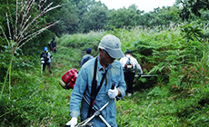 大分県集落応援室からの要請により、9月23日、大分BUの社員4名が「県小規模集落応援隊」として、久住高原(竹田市稲葉地区)の輪地切り作業に参加しました。