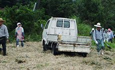 なお「県小規模集落応援隊」は、人手不足で集落の共同作業の実施が困難になりつつある「小規模集落」のくらしを守るため、あらかじめ登録している企業やNPO、ボランティア団体など様々な活動主体を「応援隊」として派遣する、県と市町村が連携して行っている取り組みです。大分支店は、平成21年6月に登録し、これまで様々な活動に参加しています。