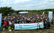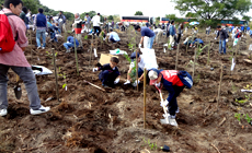 1時間半ほどの作業に、汗をかきながら、一人ひとりの活動としては2〜3本の木を植えることですが、300人の力が集まると、広大な場所に800本の苗木の植樹を行うことができました。