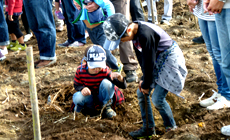 暑いぐらいの秋晴れの中、大阪府堺市「共生の森」で、植樹会を行いました。「共生の森」の活動は、産業廃棄物の埋立地を自然の力を借りてみどりいっぱいにしようという活動です。NTT西日本グループでは、共生の森にフレッツ光回線をご契約いただいている数に連動した本数の苗木を植樹しております。