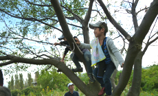 第3ポイントは、木とのふれあいです。この地にも比較的大きなセンダンの木が育っています。しかも、自然に育った木だそうです。その木に何秒ぶら下がっていられるか、みんなで競争をしました。木が一本あるだけで、これだけ子ども達は笑顔でいっぱい、ぶら下がったり、登ったり、気づけば大人たちも思わず童心にかえっていました。