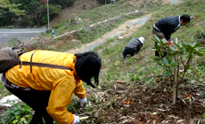 3度目となるこちらでの活動ですが、今回は前回までに植樹した苗の周りの下草刈りを行いました。