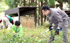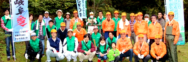 NTT西日本グループが進める「みどりいっぱいプロジェクト」の一環として、11月8日(土)「ながら川ふれあいの森」(岐阜市三田洞)において、下草刈りの森林ボランティア活動を実施しました。