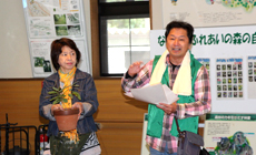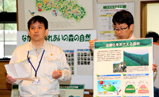 米田支店長からの活動参加のお礼のあと、「岐阜市役所農林園芸課の堀口係長・掛布様」より、森林が地球温暖化を防止する重要な役目を果たしていること。