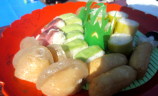 丸太切りで手が震え、なかなか上手にお箸が使えません…が、高知の田舎寿司もふるまわれ、一気に疲れが飛びました。