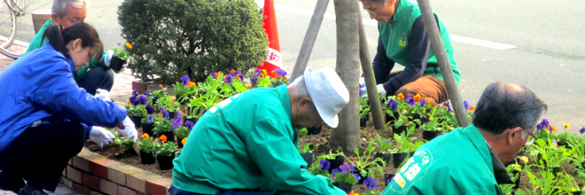 今回の活動は、NTT西日本高知支店、各ミッション会社、高知電友会様から参加いただき色とりどりのパンジー等約1000株の花植え作業を約1時間ほど行いました。
