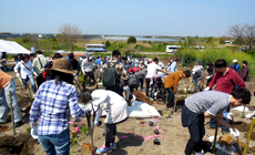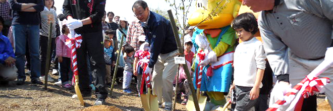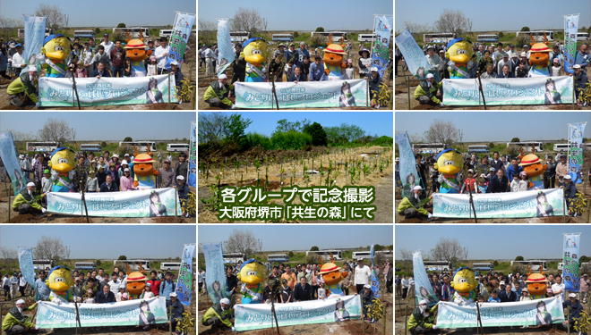 みどりいっぱい30府県1万人目標達成記念イベントと題して、社員、家族、OBのみなさん約170名で大阪府堺市「共生の森」において、記念植樹と草刈を行いました。