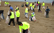 NTT西日本グループはボランティアリーダーとして、金沢市専光寺エリアの海岸線約1kmを、地元の企業やボランティア市民とともに清掃にあたりました。