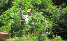 准教授の話によると草木が生い茂ったままだとイノシシが出没し里山を荒らされるとのことです。また、イノシシは綺麗に環境整備しているところには踏み入らない性質があるようで、そのために今回、環境整備を行いました。