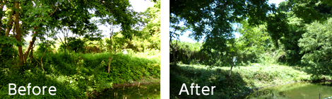 当日は天候に恵まれ、晴天の中での作業となり、皆さん汗だくになりながらも一生懸命取り組んでいただいたお陰で、2時間ほどで見違えるほどきれいになりました。また、作業前の保護池周辺は暗くどんよりとした雰囲気でしたが、作業後は同じ場所とは思えないぐらい光も入り明るくなり、清々しい気持ちになりました