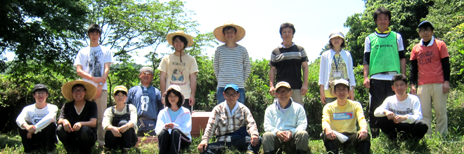 主な活動内容としましては、5月(環境整備)、6月(田植え)、9月(案山子作り)、10月(稲刈り)、12月(水抜き)、です。