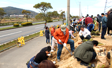 NTT西日本北九州支店グループでは、昨年に続き2回目の取り組みとなる「みどりいっぱいプロジェクト」として3月28日(土)に「鳥がさえずる緑の回廊植樹会実行委員会」主催、北九州市共催の「鳥がさえずる緑の回廊 第10回植樹会」に、約40名の社員・家族が参加協力しました。