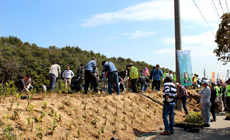 その後、過去に植樹した苗の状況を見ながら植樹会場へ移動し昨年の倍以上となる約11,000本の苗を植樹しました。