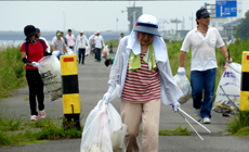 吉野川左岸河口から上流1400m〜2000m間の堤防及び河川敷600m区間を清掃・美化活動を行うものです。