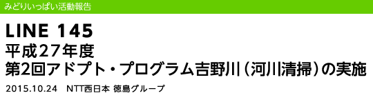 ホーム の中の 企業情報 の中の NTT西日本グループのサステナビリティ の中の みどりいっぱい活動報告 の中の LINE 145 平成27年度 第2回アドプト・プログラム吉野川(河川清掃)の実施