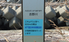 「徳島県庁:吉野川交流推進会議」と「NTT西日本徳島支店」が、アドプト(養子縁組)した区間、徳島市内:吉野川左岸河口から上流1,400m〜2,000m区間の堤防及び河川敷600m区間