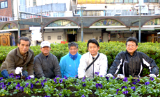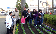 オ−プニングセレモニー終了後、7班編成で徳島駅前から阿波踊り会館・あわぎんホール前から市役所前の花壇や植樹帯に参加団体及び参加者がそれぞれの指定場所に分かれパンジーの植栽を行いました。