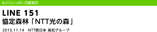NTT西日本 高知グループでは平成20年に「協働の森づくりパートナーズ協定」(高知県、高知市、高知森林組合)を締結し、「NTT光の森」として間伐作業等の交流活動を行っています。