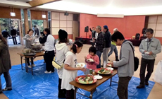 当初は間伐作業後に秋晴れのもと全員でバーベキューをする予定でしたが、雨のため昼食は交流館内でとりました。天候が悪かったため紅葉と山を見ることができず、また屋内のため解放感が足りませんでしたがバーベキュー、田舎寿司等でお腹も満腹、いつもと違う笑顔がたくさんあったのが印象に残っています。